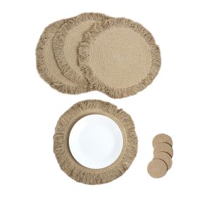 Braided Cotton Placemats 15 Inch Set of 4 with 4 Free Coasters Washable Anti Slip Heat Resistant Mats Boho Woven Round Table Mats for House Decor